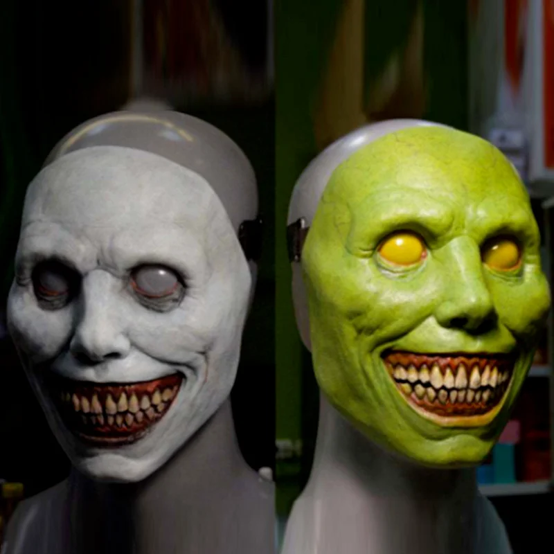 Новая ужасная маска на Хэллоуин, белая, зеленая маска на лицо, экзорцист, улыбка, латексная ужасная маска на лицо клоуна, реквизит для косплея на Хэллоуин и вечеринку