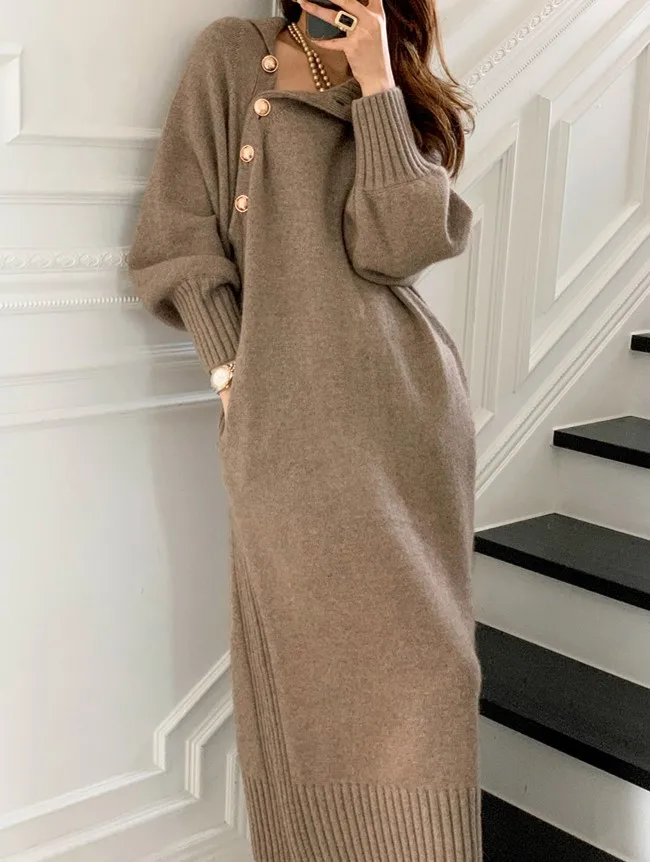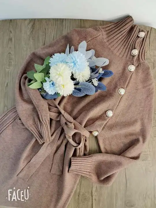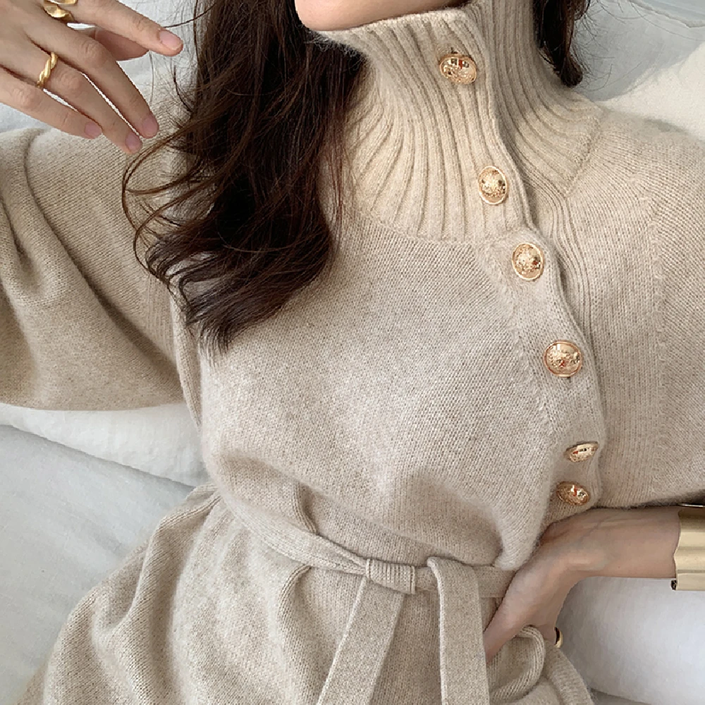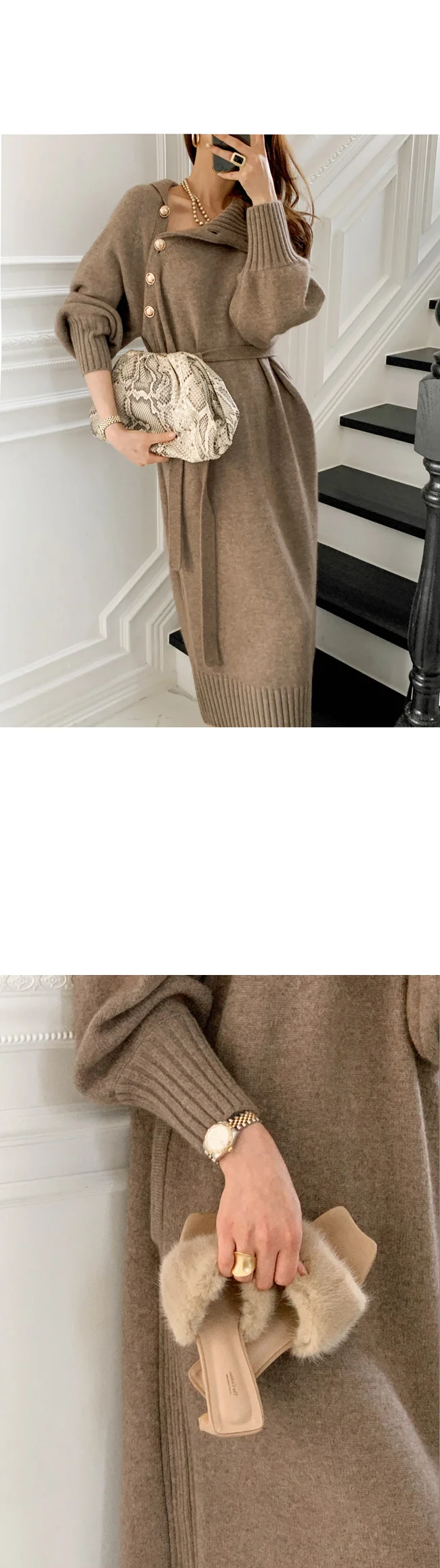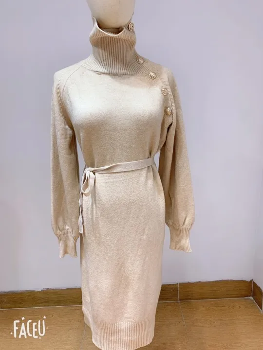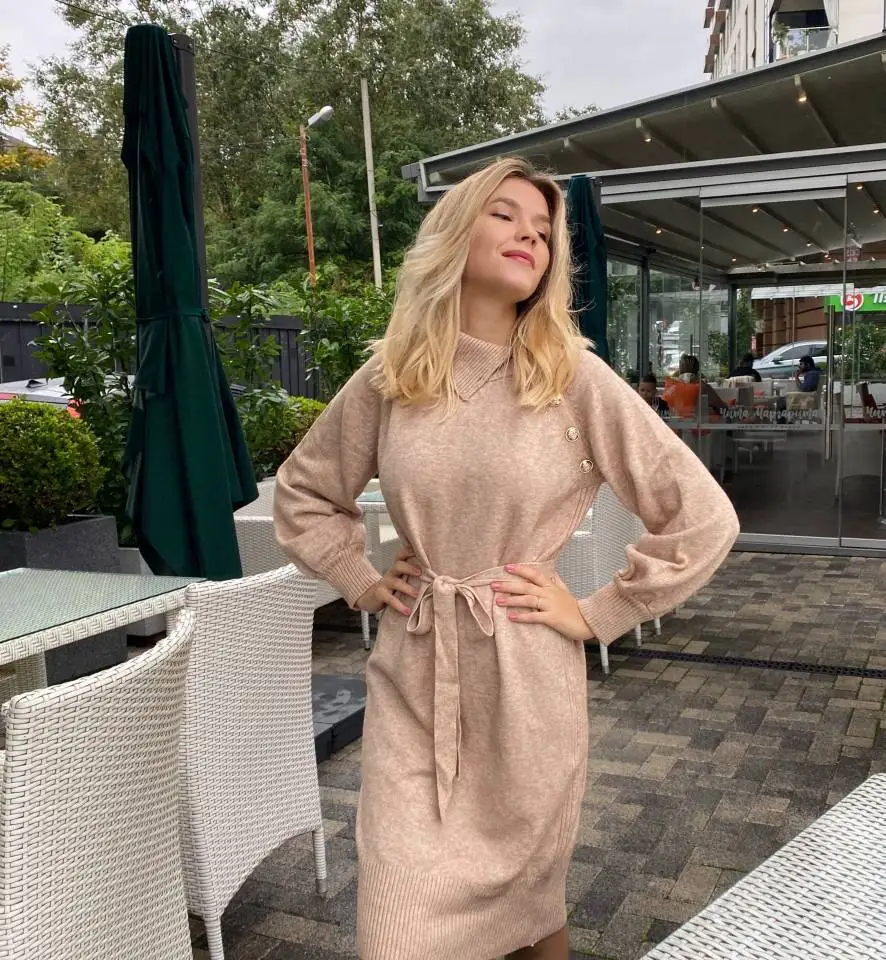 Платье-Свитер женское трикотажное, с длинным рукавом, Осень-зима 2021