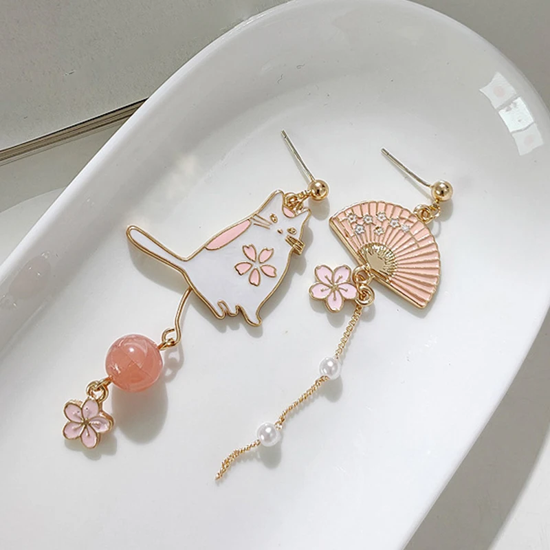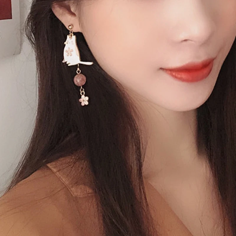 Ассиметричные милые серьги-подвески в Корейском стиле с животными для женщин Цветок Луна Звезда котенок кролик воздушный шар женские подарки