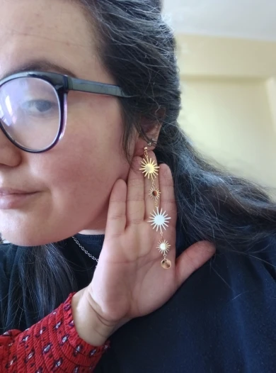 Серьги прекрасные! Лёгкие, красиво блестят. Чуть - чуть цепляются за волосы, но это абсолютно не критично. На ушах не чувствуются. Однозначно классные