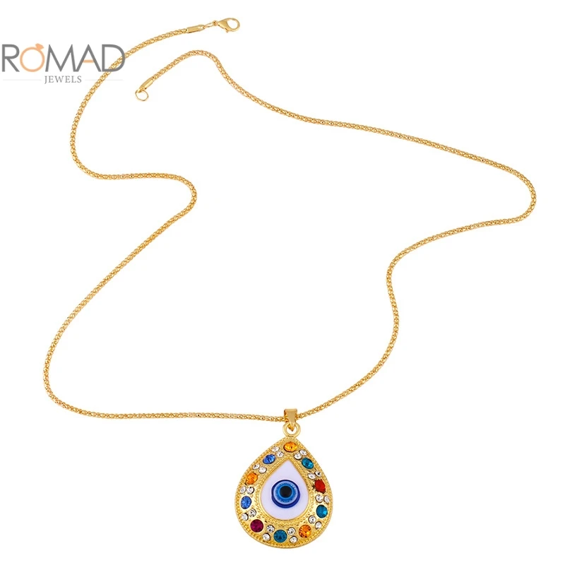 Женское медное ожерелье ROMAD из сплава Фатима, ожерелье с цепочкой из циркония с голубыми глазами, ожерелье с подвеской для женщин, модные украшения
