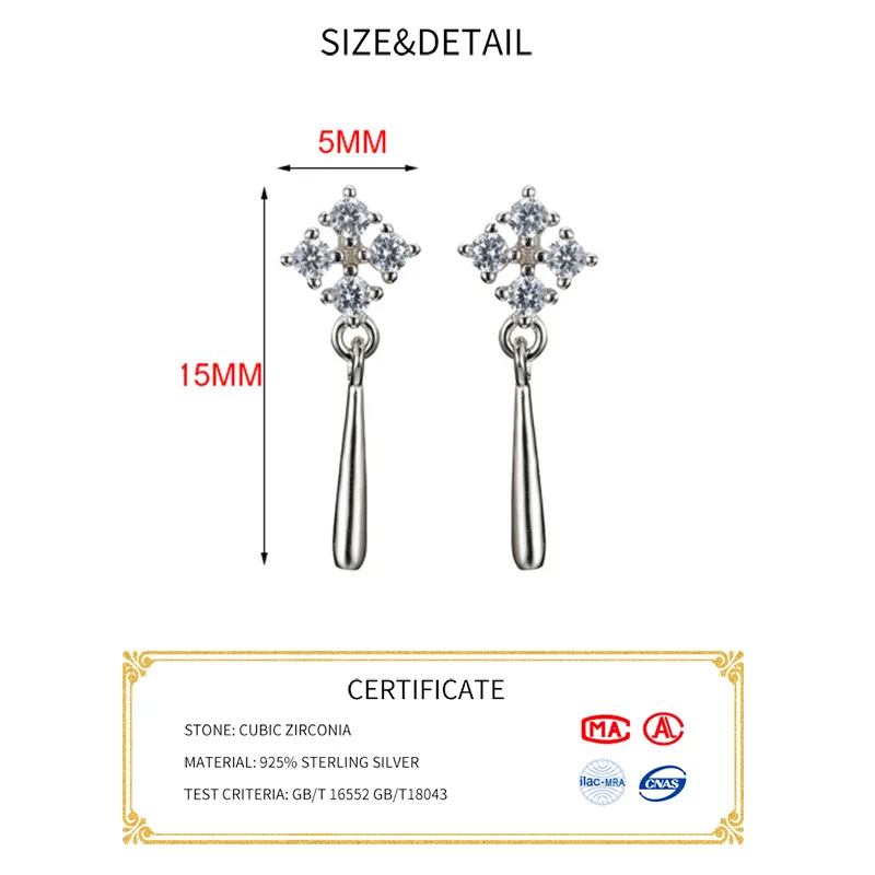 Женские серьги-подвески из серебра 925 пробы, с квадратным Цирконом