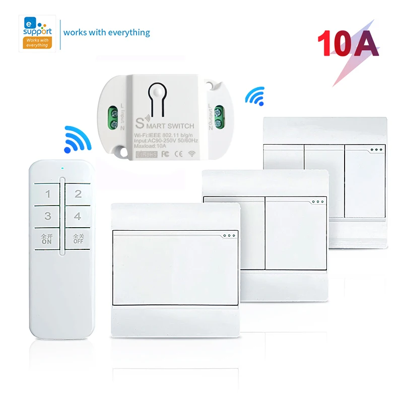 Support eWeLink remote control & remote smart wireless switch eWeLink remote control and remote smart wireless switch are specially designed for eWeLink WiFi+remote smart switch. They can be placed at where you want to be(The best distance is within 15M). According to the manual, after pairing with smart switch, it can be controlled by eWeLink remote control and remote smart wireless switch.
