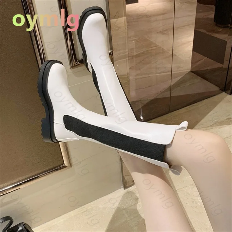 Модные сапоги до колена из искусственной кожи на платформе; Женские черные сапоги Челси на массивном каблуке; Женские осенние сапоги без застежки; Bota Feminina; 2021
