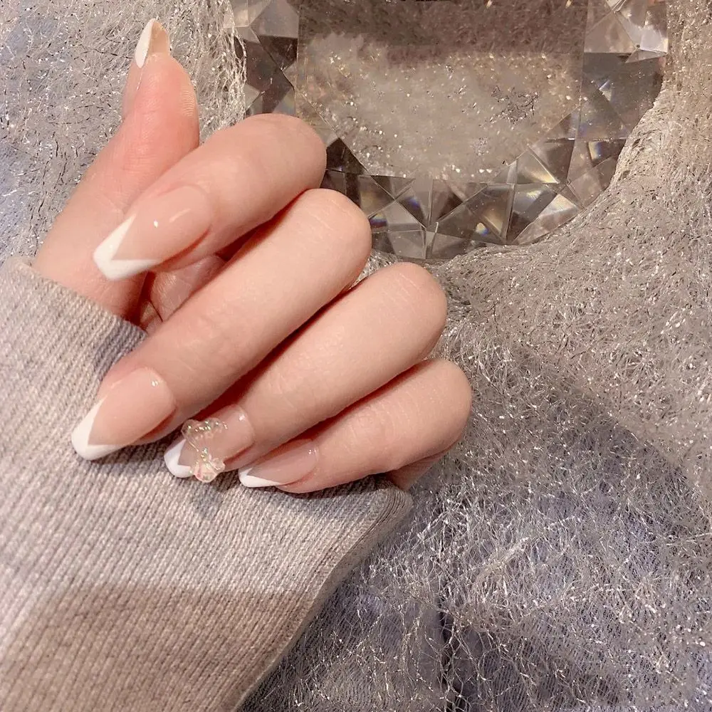 24 шт.кор. съемные гвозди, накладные ногти с белым краем, бабочкой, бантом, балериной, накладные ногти с полным покрытием, накладные ногти