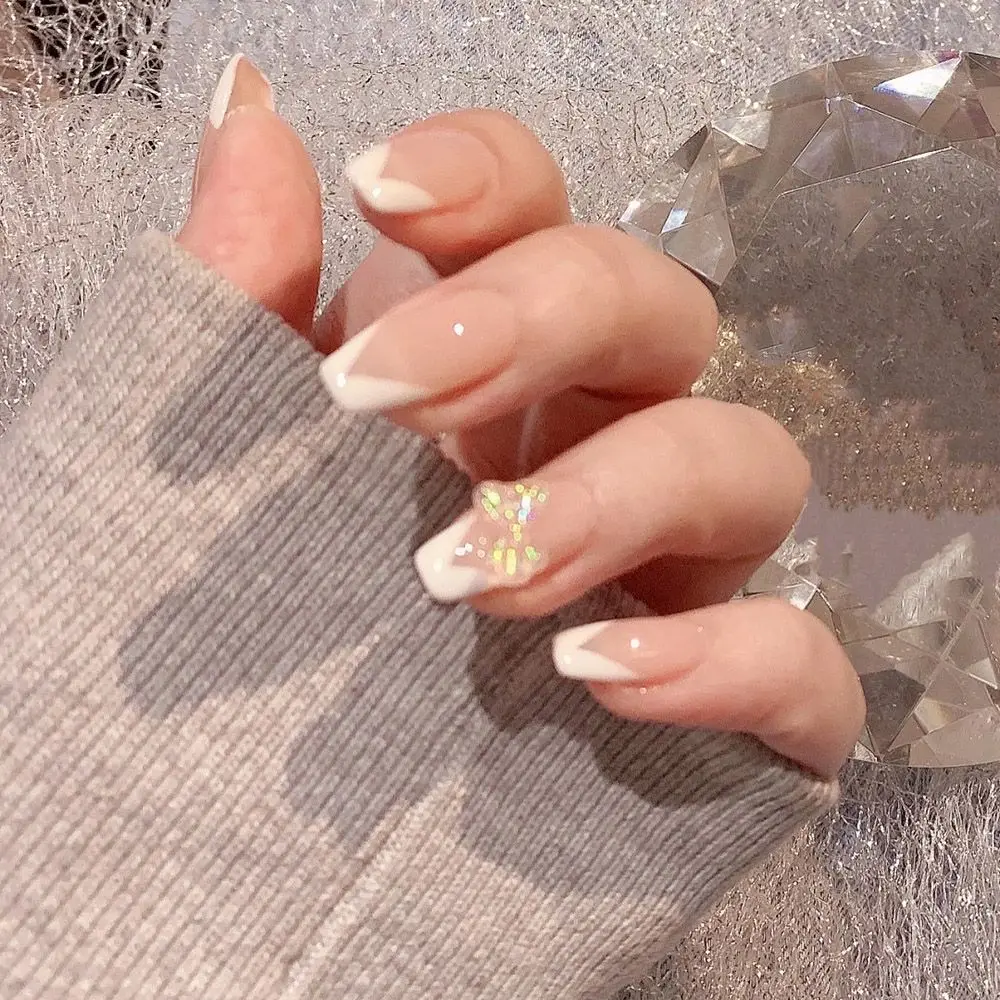 24 шт.кор. съемные накладные ногти с карамельным покрытием, француз...