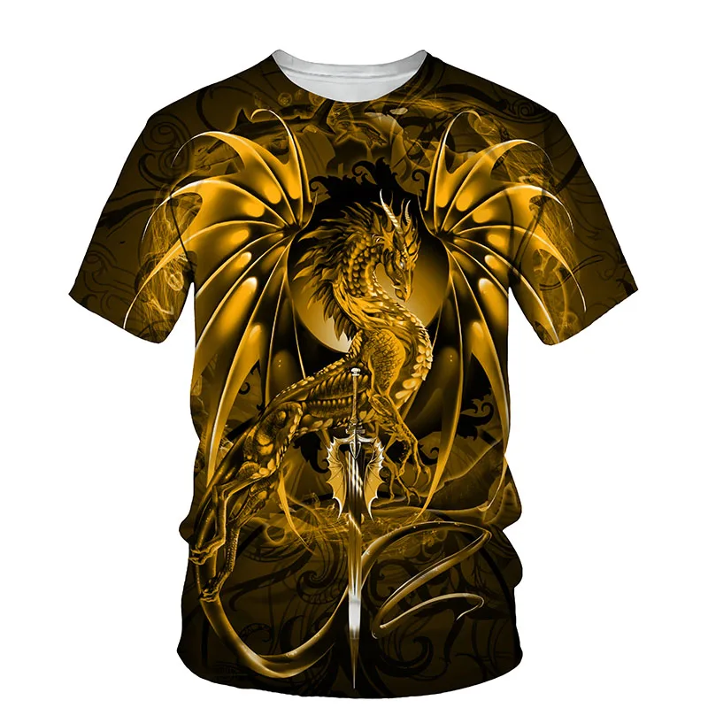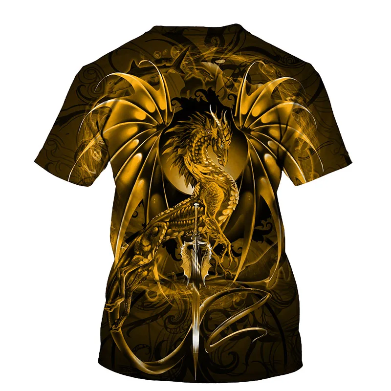 Футболка мужская с круглым вырезом, короткий рукав, 3d-принт, Повседневная модная рубашка, топ в западном стиле дракона, лето 2021