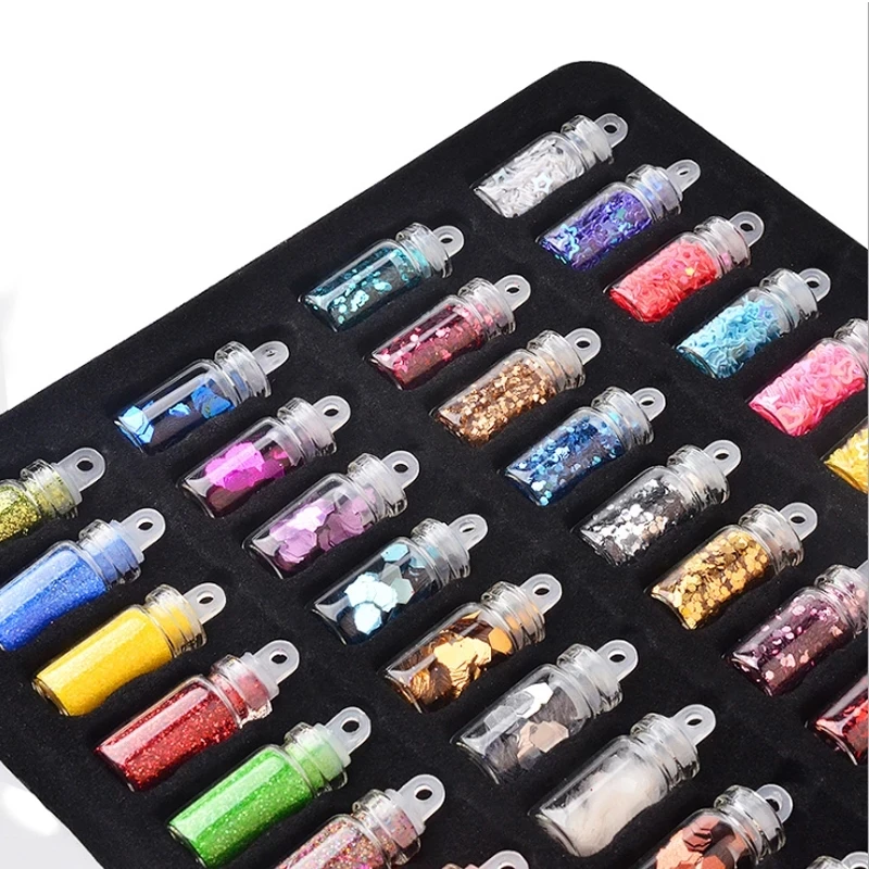 Limegirl 48 бутылокнабор Стразы для дизайна ногтей блестки с порошк...