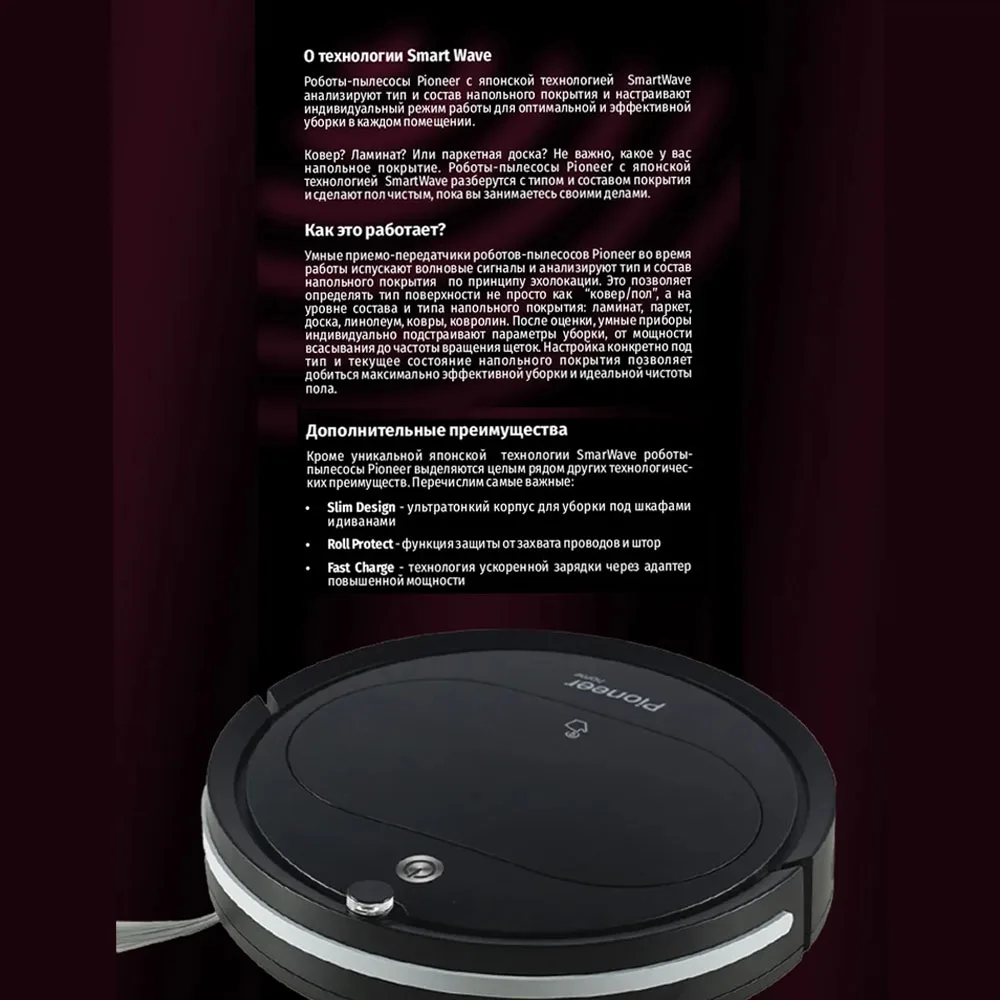 Робот пылесос Pioneer VC701R черный, с пультом ДУ