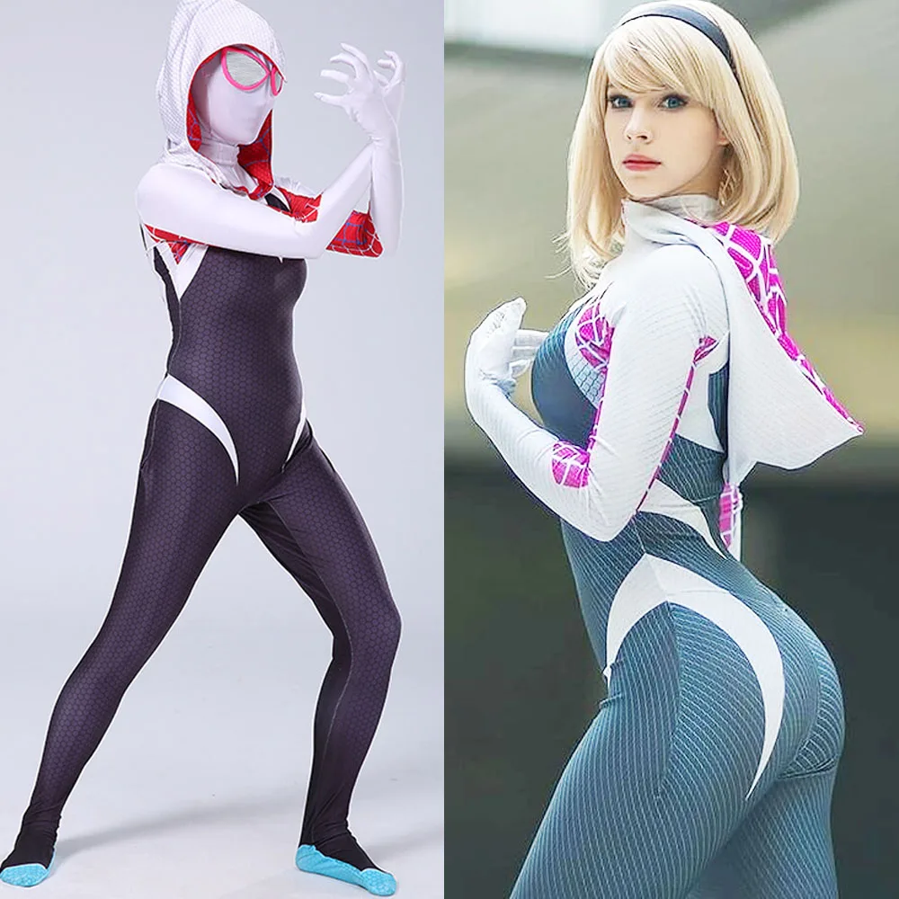 Костюм Человека-паука Гвен; Костюм Stacy; Карнавальный Костюм «зентай»; Вечерние костюмы для девочек; Женский костюм (комбинезон + маска)