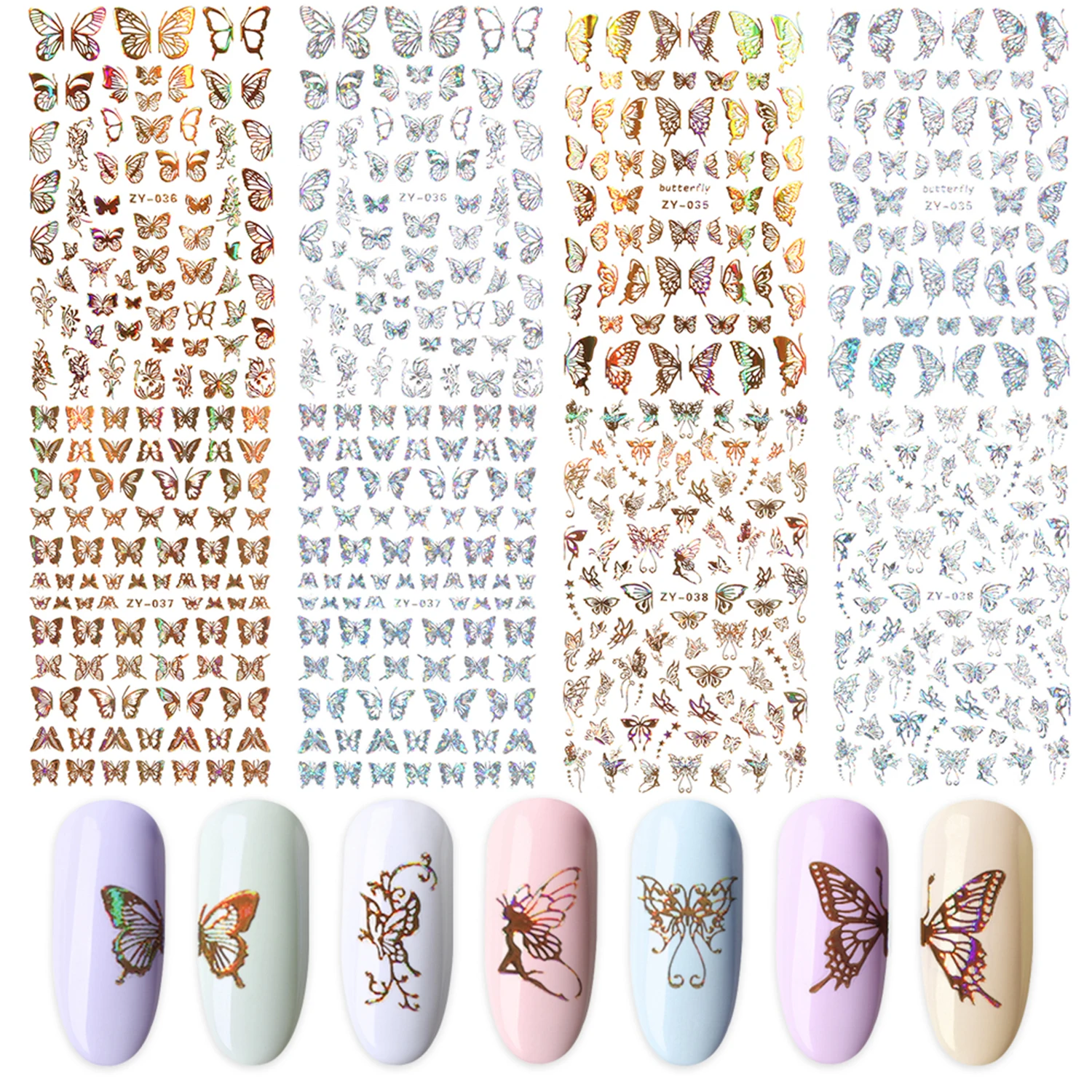 1 шт., лазерные наклейки для ногтей с бабочками, новые золотые, серебряные клейкие слайдеры, наклейки, фольга, обертывания, красочные украшения «сделай сам», маникюр