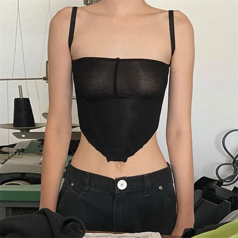Женский летний топ на бретельках, повседневный укороченный топ без рукавов в готическом стиле, 2000