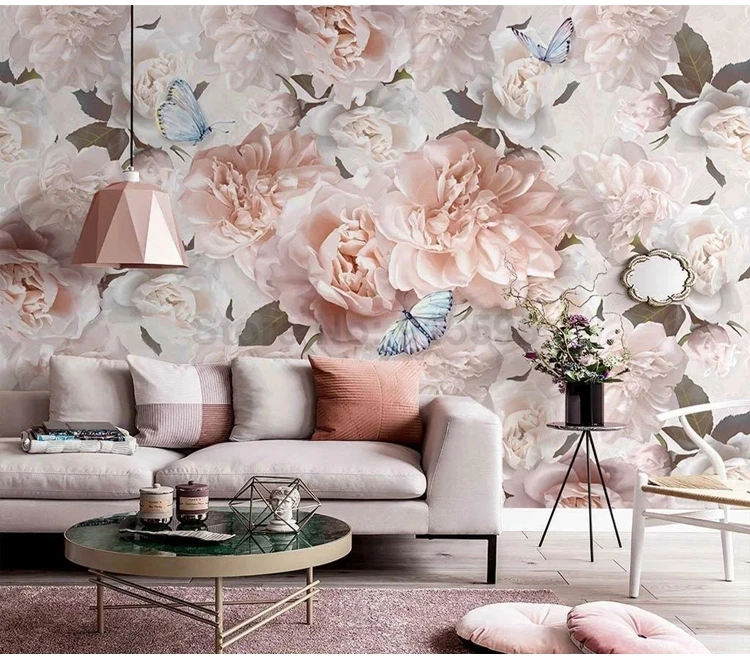 Декор для интерьера дома, цветы, бабочки, настенная бумага, на заказ, для спальни, гостиной, фото, настенная бумага, Декор для дома, 3D