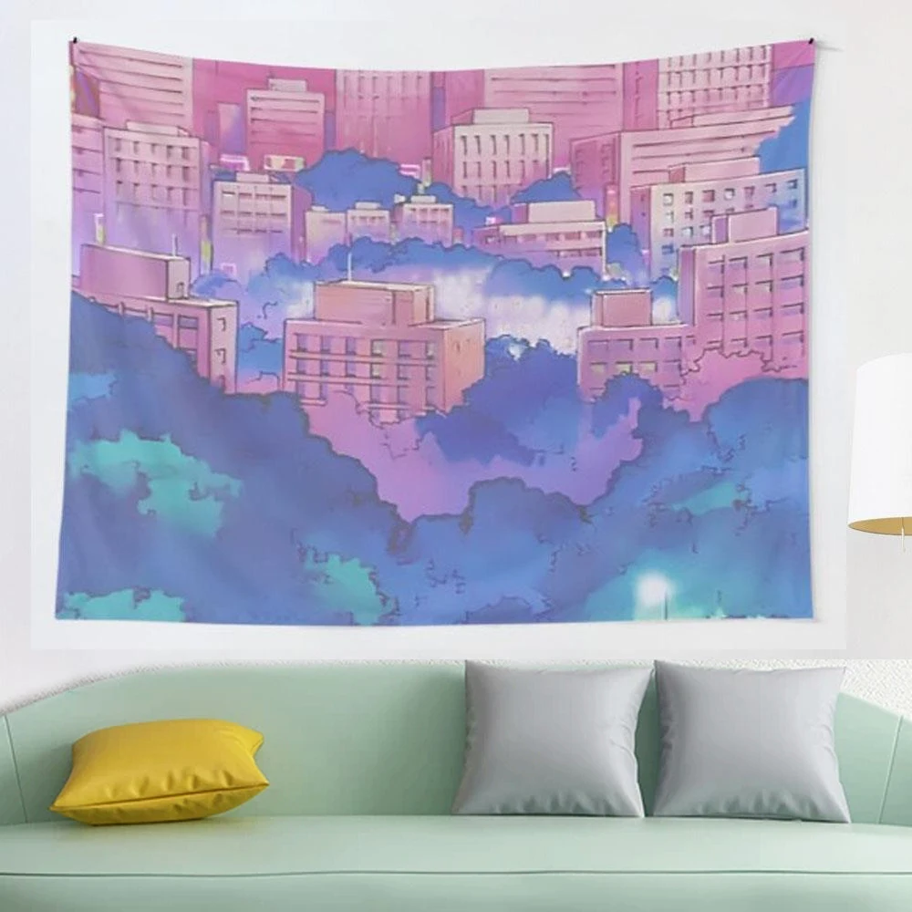 Сейлор Мун, Розовая мечта города, искусственная мозаика, стиль хиппи, бохо, настенные гобелены, мандала, тканевый коврик, декор для гостиной