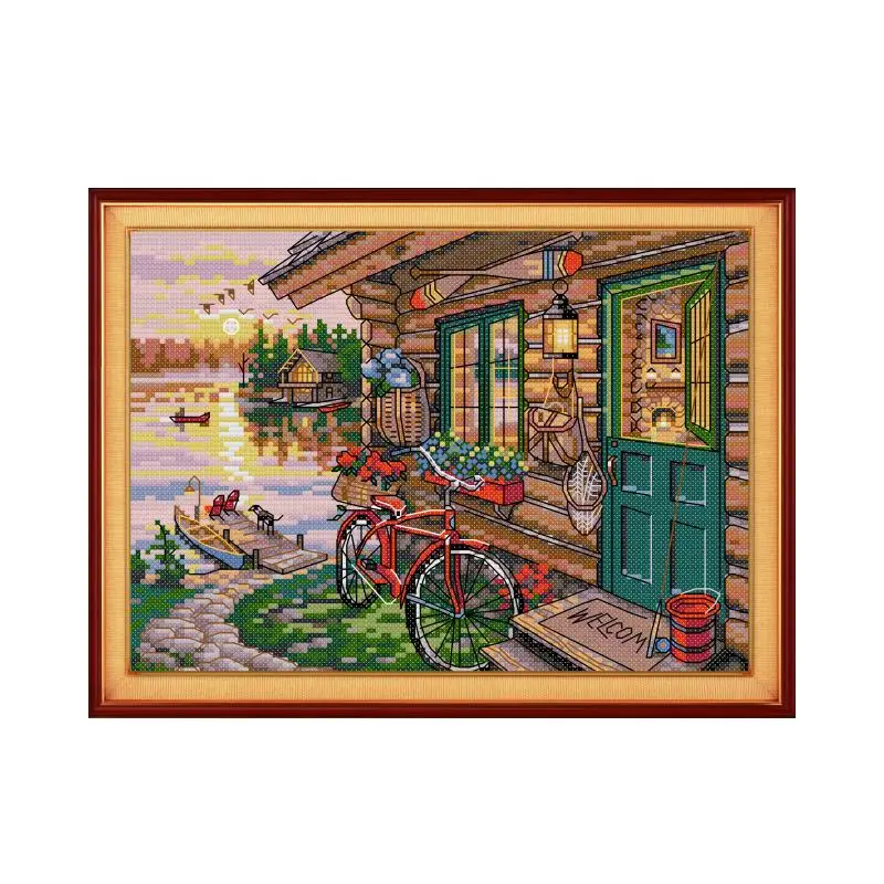 Риверсайд хижина, вышивка крестиком, напечатанная на холсте DMC 11CT 14CT, наборы для вышивки сделай сам, ручная работа, рукоделие