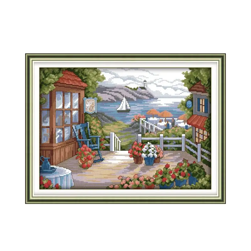 Joy Sunday Garden Villa series Aida Набор для вышивки крестиком с принтом, Набор для вышивки крестиком, ручная работа, Набор для вышивки