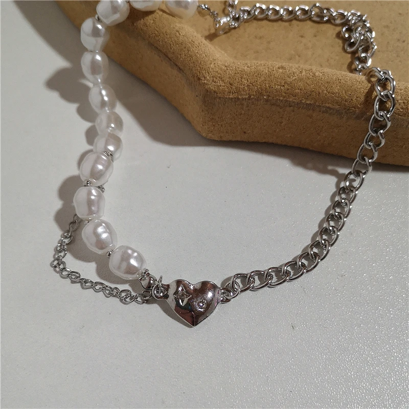 Kpop Винтажное колье с жемчугом в стиле барокко, подвеска в виде сердца, ангела, цепочка на ключицы для женщин, Egirl, готическое крутое эмо, панк, гранж, ювелирные изделия