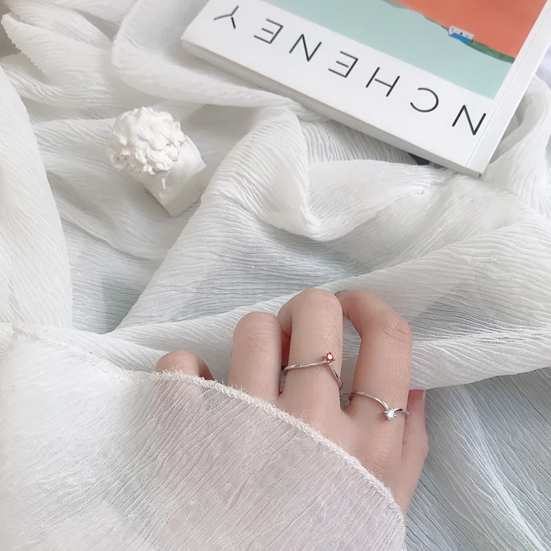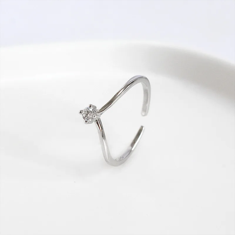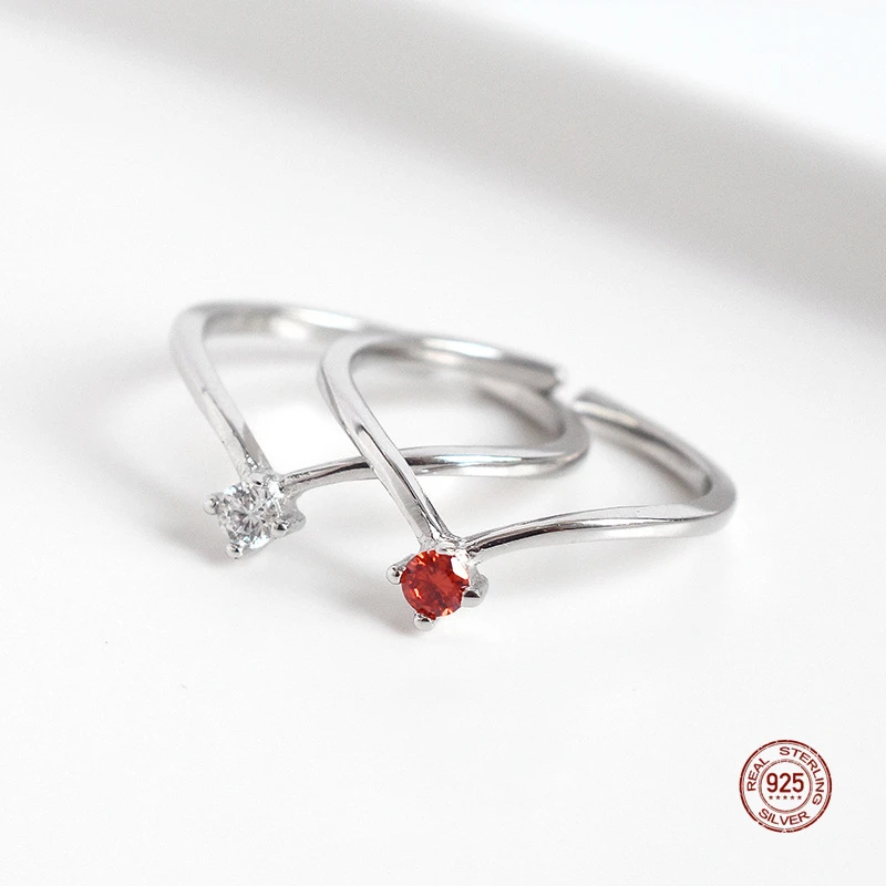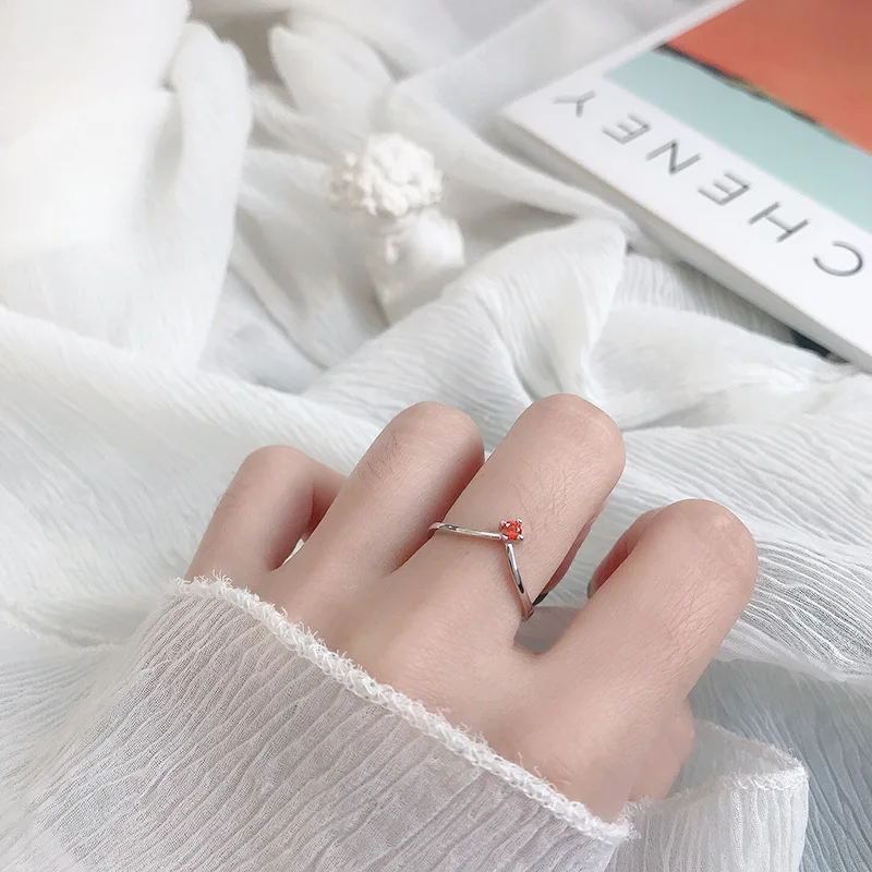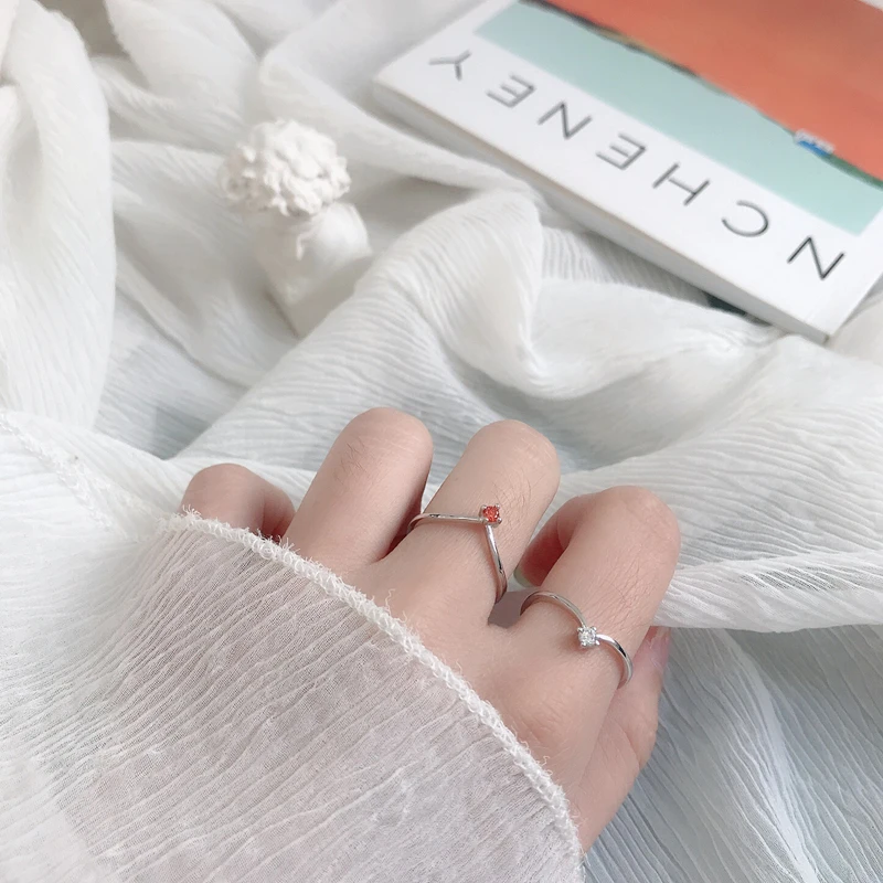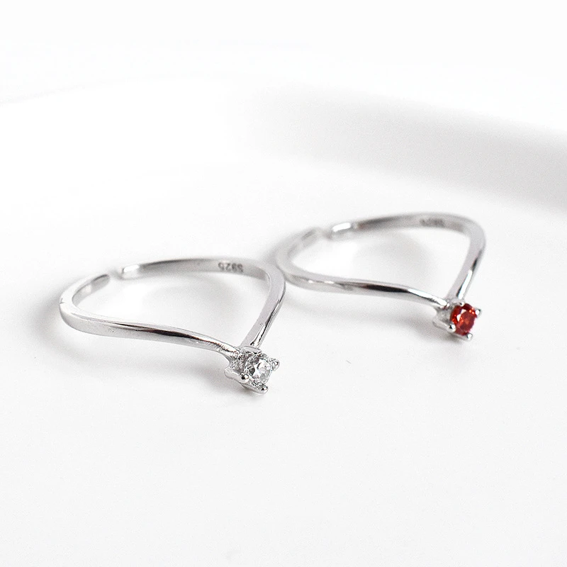 LKO Настоящее стерлингового серебра 925 пробы сладкое V-образное открытие Регулируемое кольцо с кристаллами Ювелирные изделия Кольцо на палец для женщин Девочки Вечеринка Лучший подарок