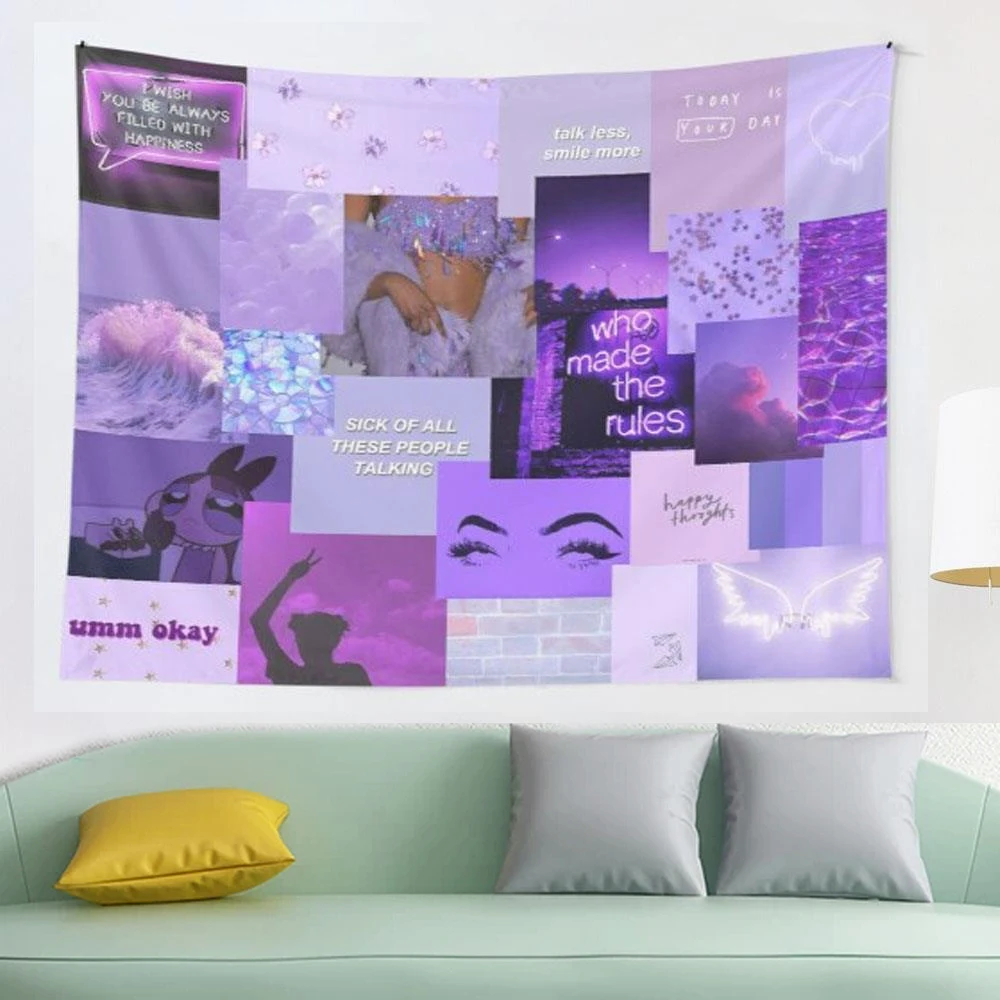 Фиолетовый ковер в эстетике коллажа, украшение для дома в спальню, новогодвечерние, большой размер, гобелен на стену в стиле бохо, декоративный