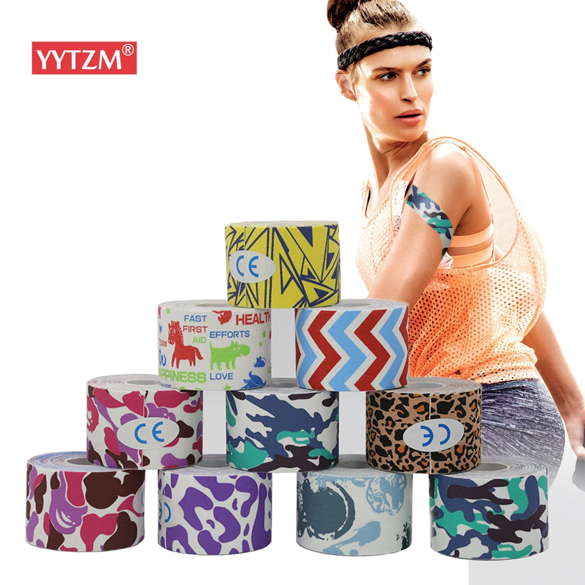 5 см х 5 м хлопковая эластичная печать Спортивная мышечная пластырь физиотерапия Спорт Футбол снятие боли в суставах Кинезиология мышечная пластырь