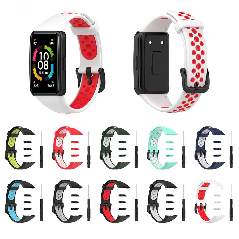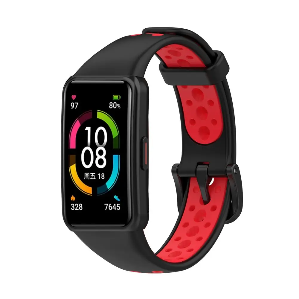 Ремешок силиконовый для Huawei Band 6, дышащий спортивный сменный двухцветный браслет для huawei honor band 6