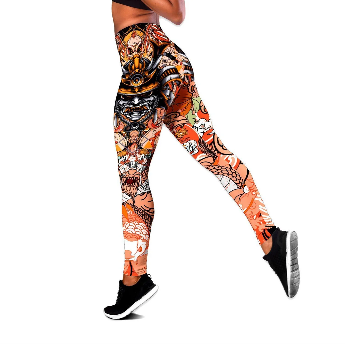 Женские легинсы, модные легинсы с 3D Цифровым принтом, легинсы с татуировкой на шлеме самурайского шлема и майка, сексуальные эластичные женские облегающие Легинсы DDK10