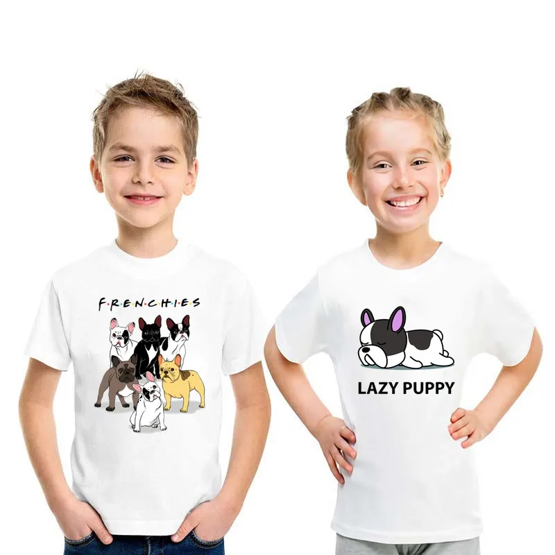Забавная детская футболка с принтом французского бульдога и собаки, детская одежда, футболка для мальчиков и девочек, Летние Повседневные детские топы, футболки HKP2148