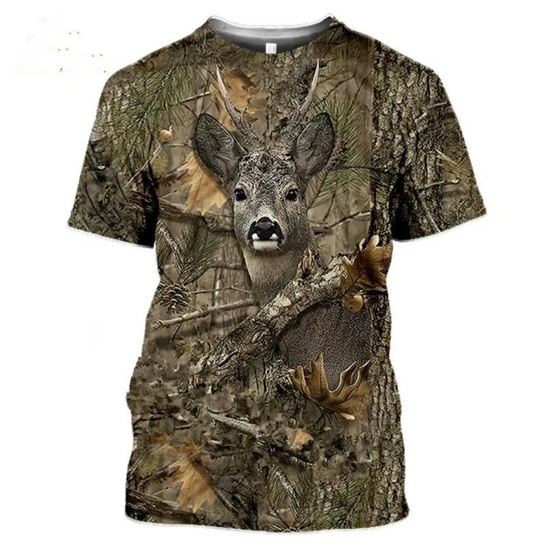 Камуфляжная футболка CLOOCL с 3D изображением охотничьего оленя, По...