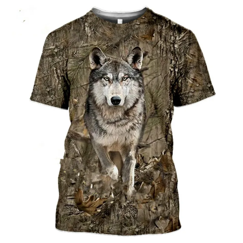 Камуфляжная охотничья 3D футболка с животными волка летняя повседне...
