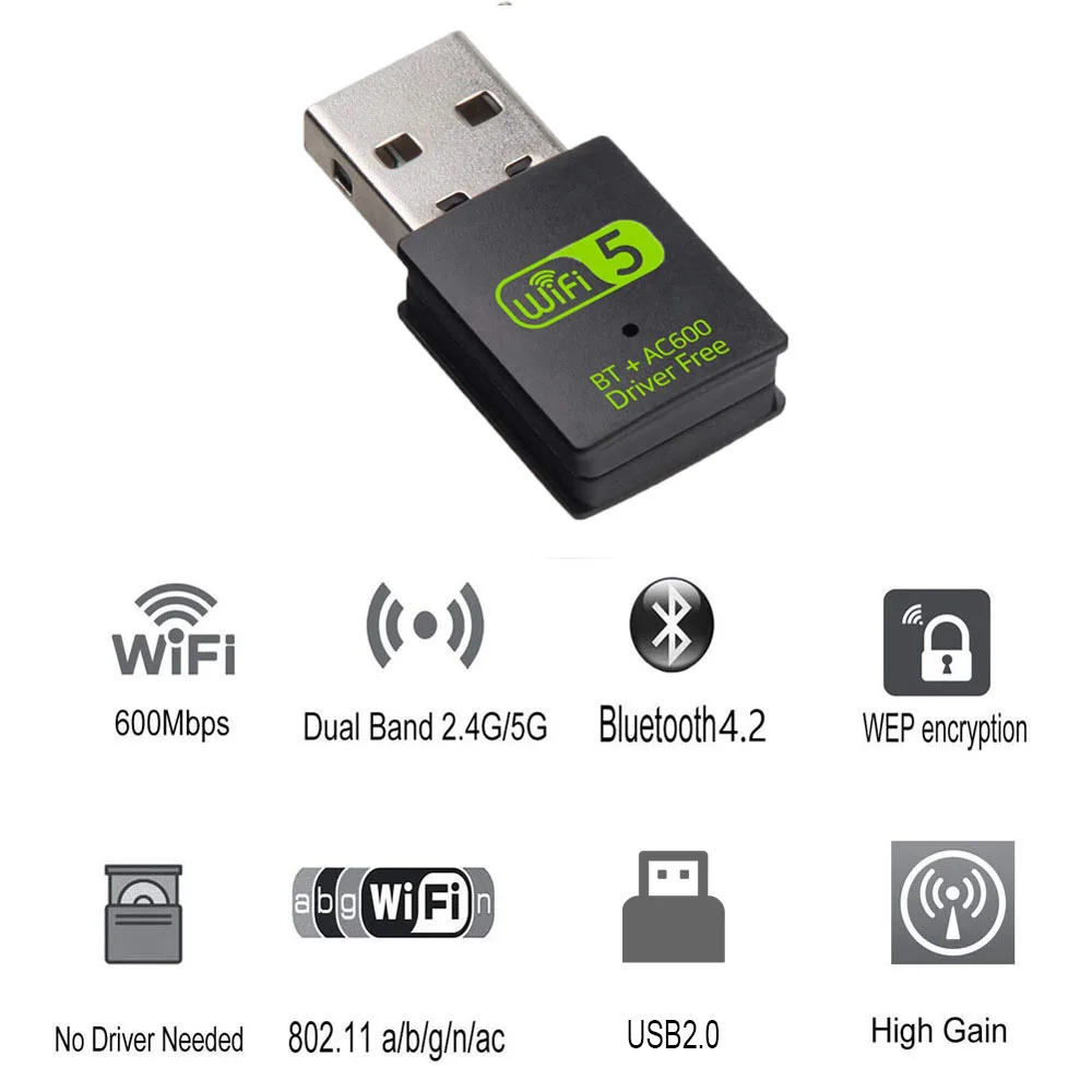 USB Wi-Fi Bluetooth адаптер 600 Мбитс, 2,45 ГГц