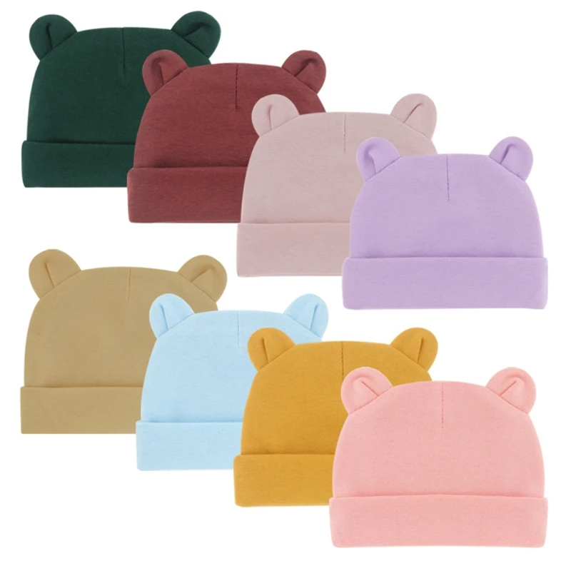 Милая детская шапка, яркие однотонные шапки с ушками для мальчиков ...