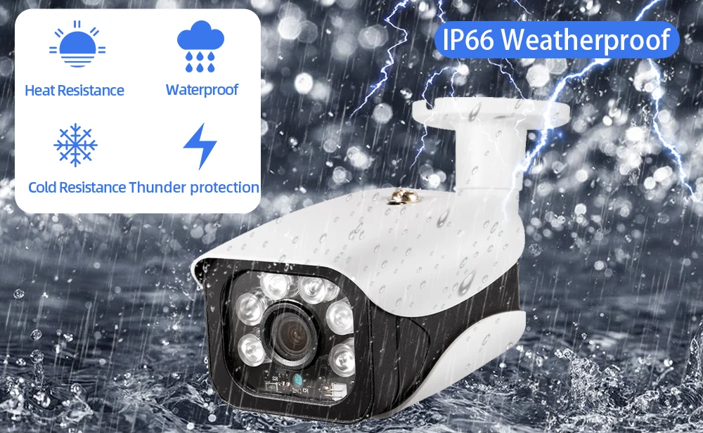 Используйте их как наружные или внутренние камеры, так как они крепко сконструированы, чтобы выдерживать любую погоду бросает: дождь, снег, пыль и жаркие дни. Благодаря классу защиты от атмосферных воздействий IP66 и кабелям, продетым через подставку для дополнительной защиты, вы сможете ответить на их работоспособность, день в день, выходной. В нашей камере используется сверхпрочный металлический корпус, профессиональный IP66, устойчивый к атмосферным воздействиям, обеспечивающий стабильную производительность как в помещении, так и на улице.
