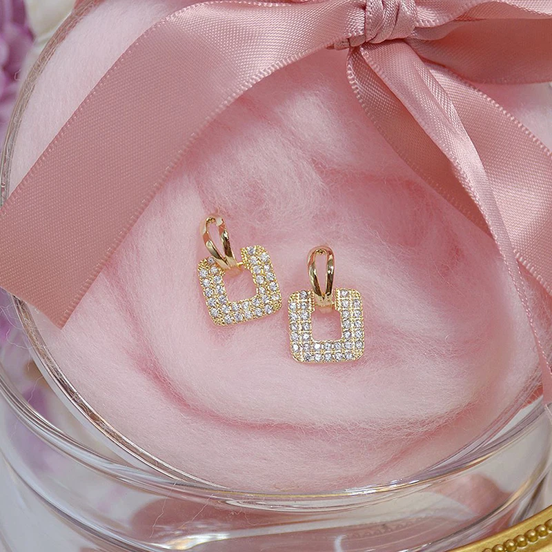 Серьги-гвоздики женские, квадратные, круглые, золотого цвета