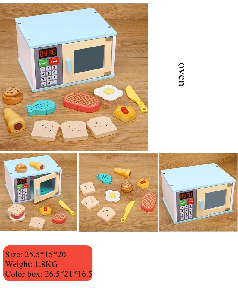 Детская Имитация деревянной духовки Монтессори со звуком и подсветкой, машина для хлеба, кофейная машина, комбинированная игрушка для кухни и игрового домика