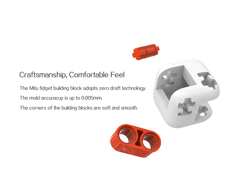 Особенности:1. Безлимитный флип, Наслаждайтесь временемСтроительный блок Mitu fidget компактен и деликатен. Вы не можете с ним веселиться.Это поможет вам избавиться от стресса и беспокойства.2. Мастерство, комфортСтроительный блок Mitu fidget использует технологию нулевого проекта. Форма accuracuy до 0,005 мм.Углы строительных блоков мягкие и гладкие.3. Трехцветный дизайн, простой стильСтроительный блок Mitu fidget принимает классический серый, белый, оранжевый дизайн трех цветов. Простой стиль позволяет вам чувствовать себя комфортно.4. Легкий и портативныйСтроительный блок Mitu fidget имеет легкий вес, который может поместиться в вашем кармане. Вы можете наслаждаться им в любое время.5. Свободная сборка, креативностьСтроительный блок Mitu fidget может сочетаться с роботом Mitu строительные блоки.Посылка включает в себя:1 х строительные блоки1 x Руководство пользователя