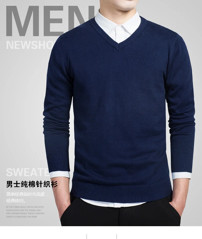 Мужской Хлопковый пуловер с длинными рукавами, свитер с V-образным ...