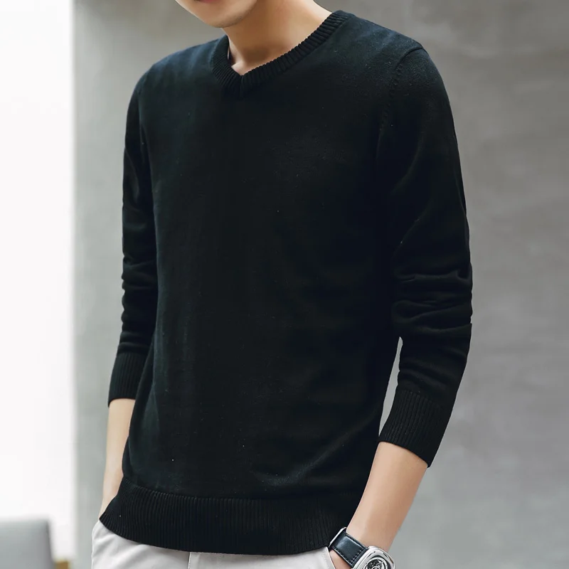 Мужской трикотажный свитер с V-образным вырезом и длинным рукавом