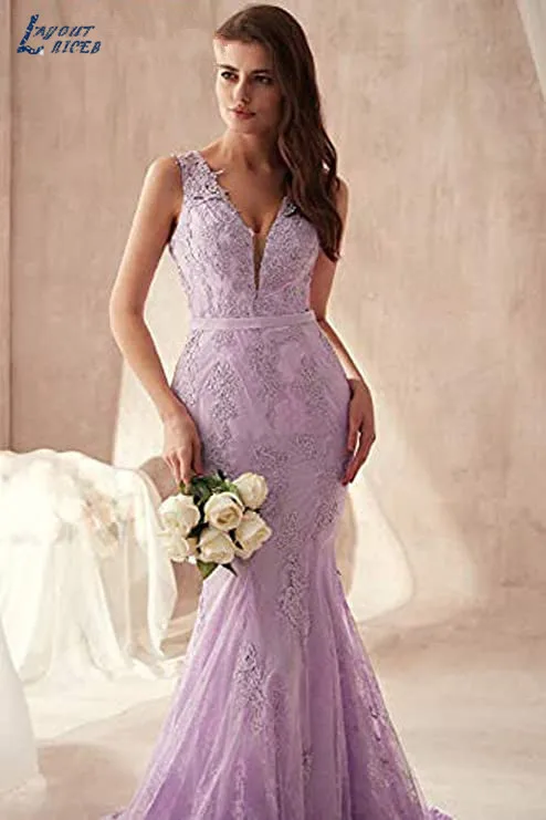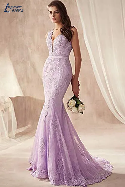 Длинное вечернее платье-русалка, кружевное платье с V-образным выре...
