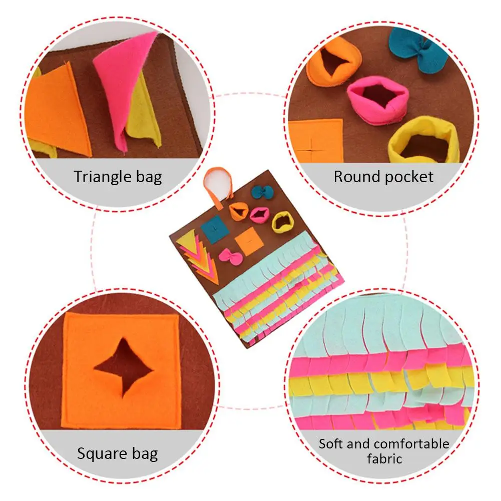 Информация о продукте:Коврик для кормления собакSniffing pad small / big dog training mat pet training blanket work suitable for all dogsSize: about 50*45cm/19.69*17.72inWeight: about 250gMaterial: Polyester Uses: pet sniffing pad / training mat / work activity mat / decorative matProduct selling point:1. It is a unique dog training mat with hidden snacks or small toys in the Sniffing pad for your dog to find it. It helps to train your dog's smell, and can consume your dog's energy and help your dog to lose weight.2. It can keep your dog occupied. This dog feeding pad is a great way to have a dog with lots of energy to use their brain during their dinner time, it can wear them like walking.3. With this non-slip dog nose pad with 2 straps, you can fix it under the chair to prevent it from slipping when the dog sniffs. The dog mat stimulates your dog mentally and physically, helping to relieve stress and relax.4. Easy to clean, the dog's nose pad is made of sustainable hand-made anti-pilling fleece material, and the dog's sniffing pad can be cleaned by machine. 5. Size about 50*45cm/19.69*17.72in, ideal for medium small dogs, rabbits and other animals.Product list: 1 Pcs