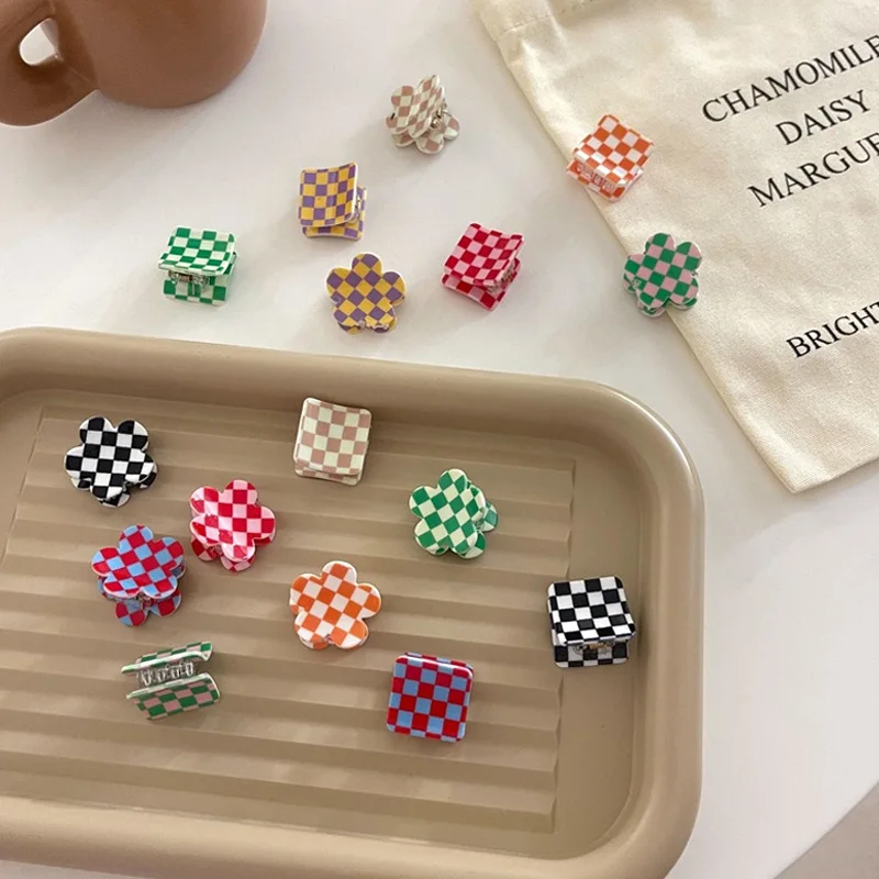 Мини заколка для волос в клетку с цветами для женщин и девушек, женская заколка-краб для волос, простые заколки для волос, шикарная заколка для волос
