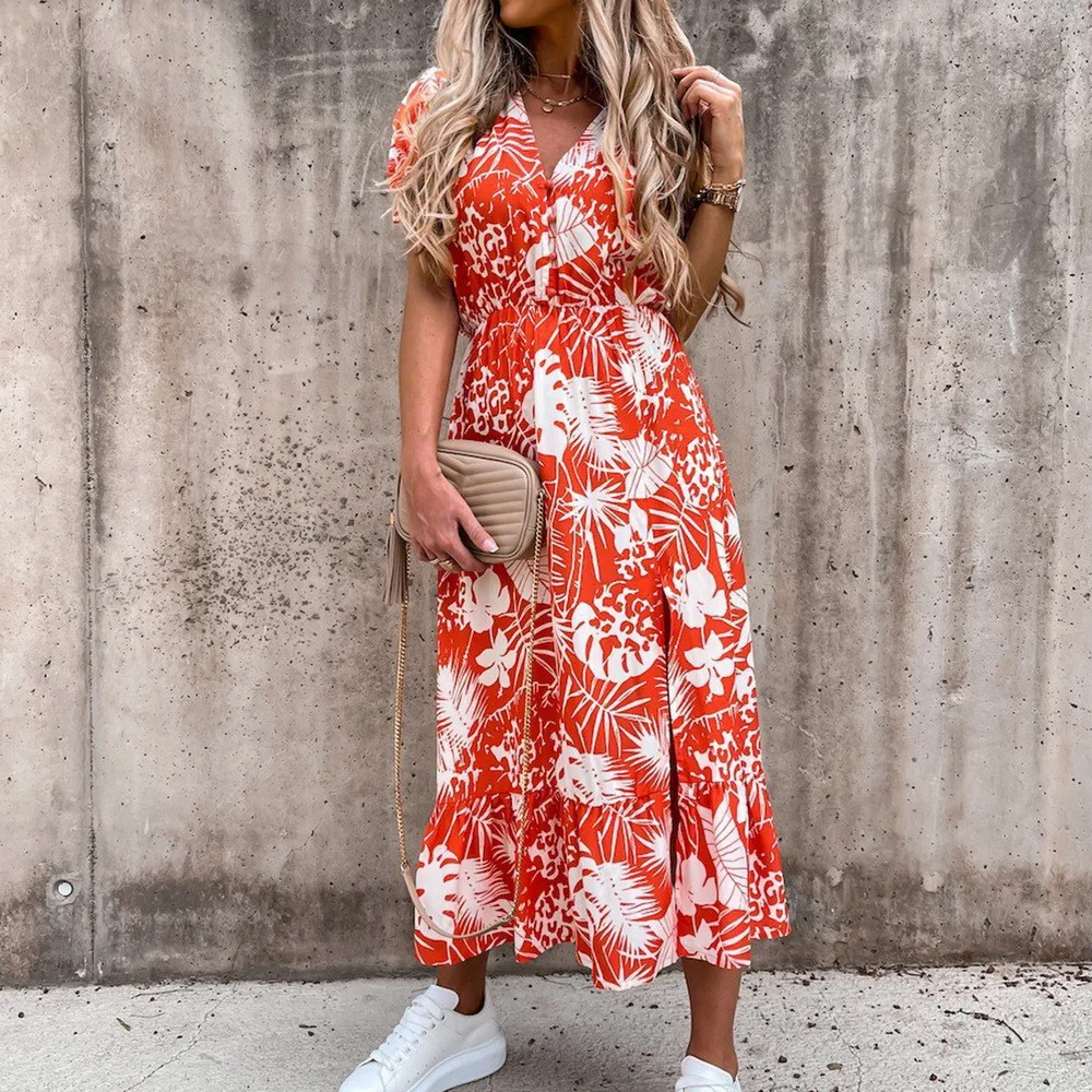 Платье женское пляжное с V-образным вырезом, повседневное винтажное...