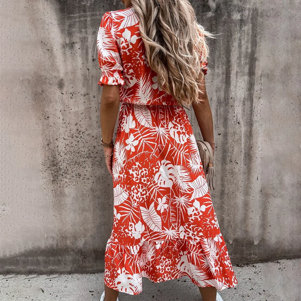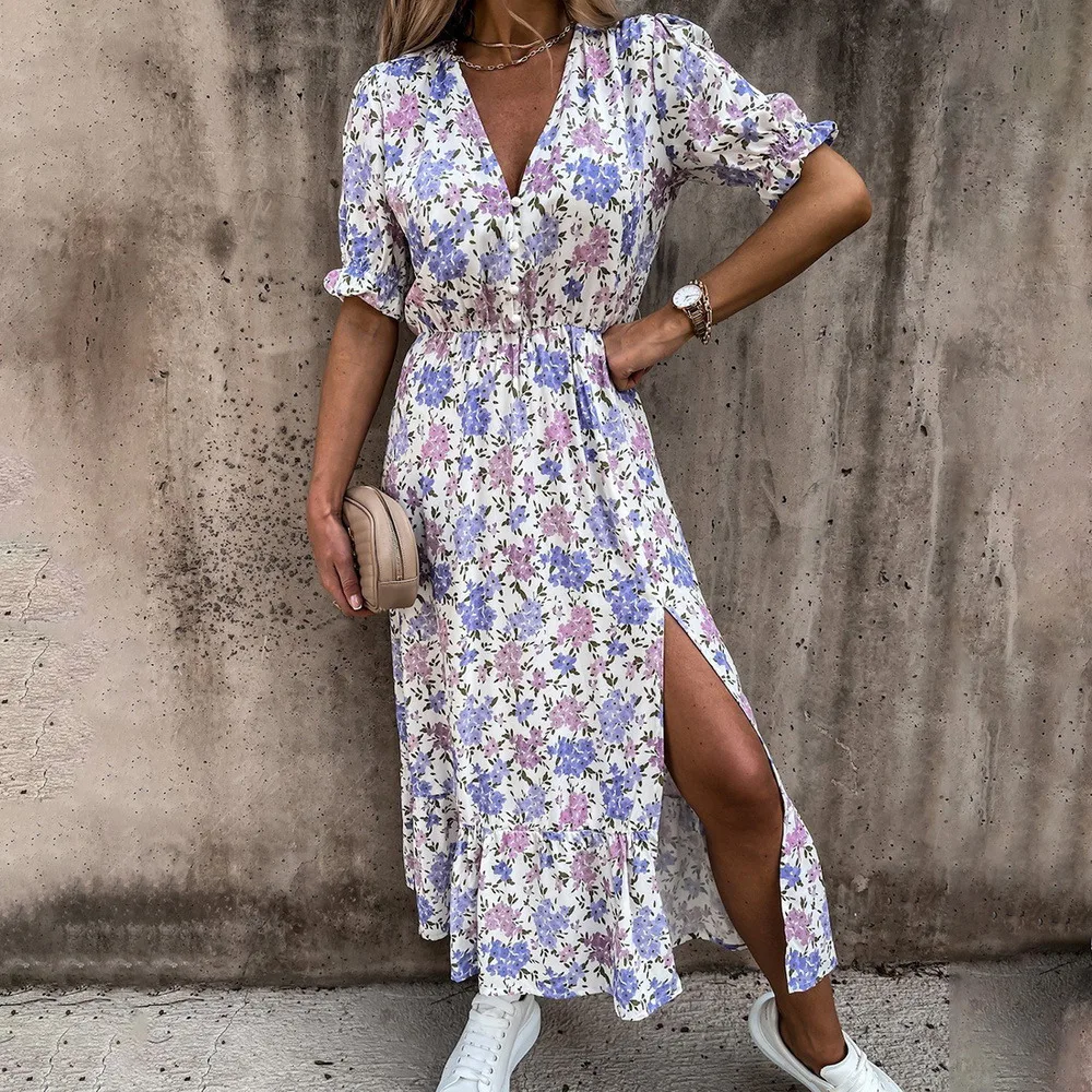 Модное женское элегантное платье с V-образным вырезом и цветочным п...