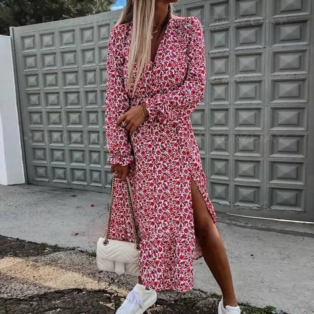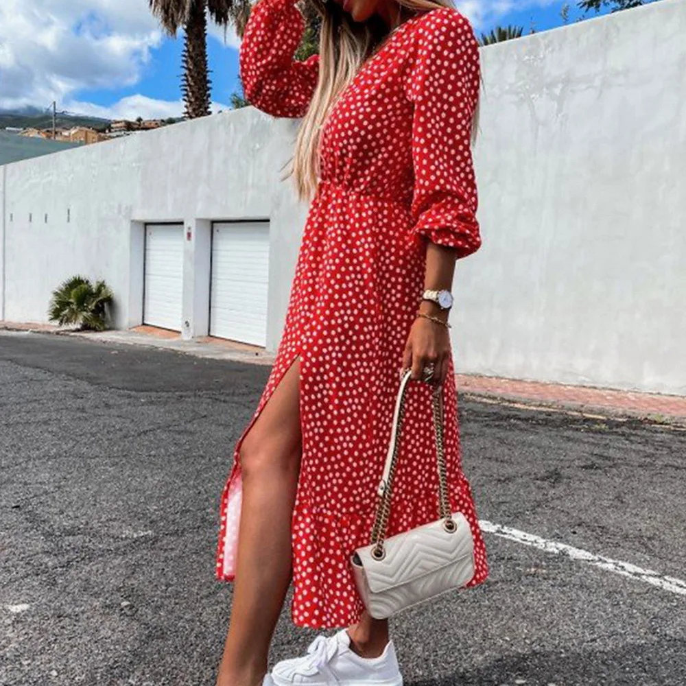 Платье женское с цветочным принтом, длинное пикантное уличное повсе...