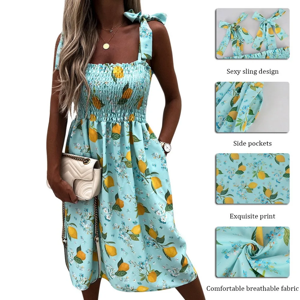 Платье на бретелях YYCZF женское, с цветочным принтом, с коротким р...