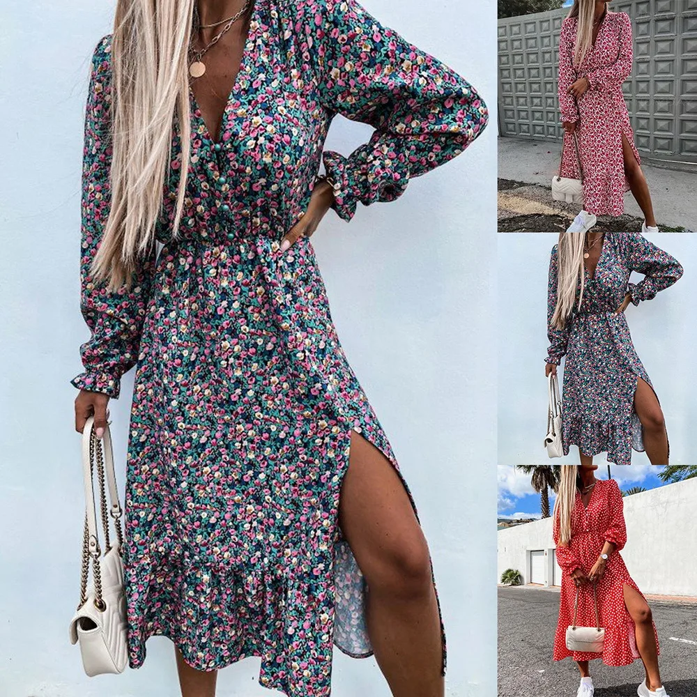 Лидер продаж 2021, модное богемное платье с V-образным вырезом и цв...