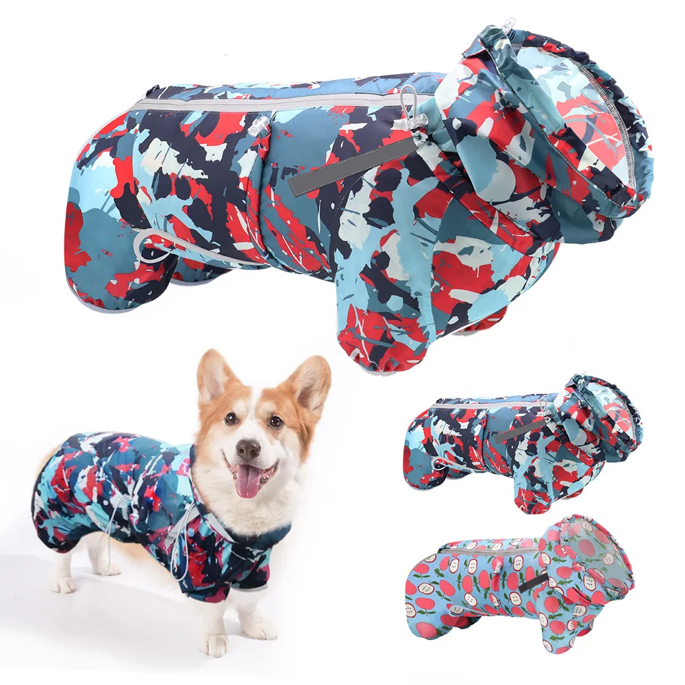 Непроницаемый светоотражающий дождевик для собак, водонепроницаемая одежда для собак, комбинезон с капюшоном для французских собак, дождевики для маленьких, средних и больших собак