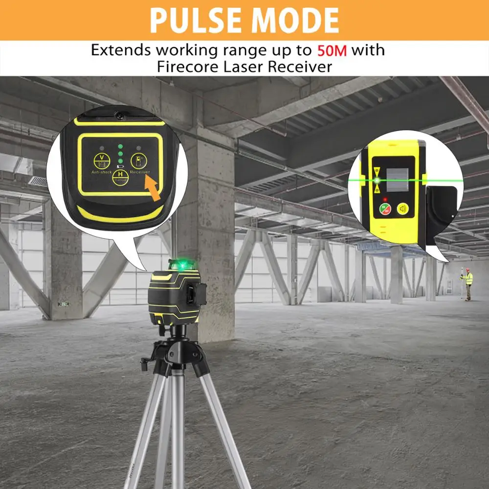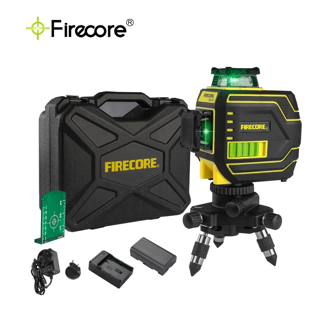 FIRECORE Лазерный уровень , профессиональный нивелир с 12 линиями зеленого лазера, самонивелирующийся нивелир с миниатюрным штативом и литий-ионным аккумулятором
