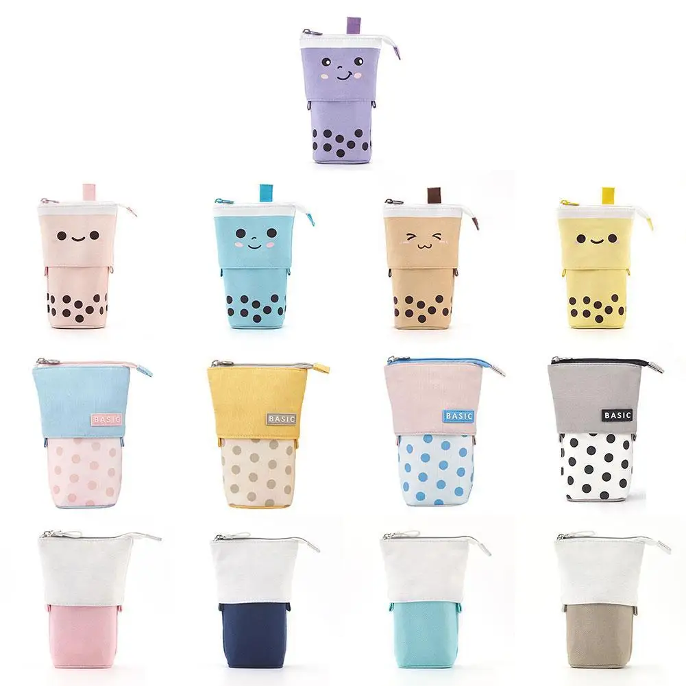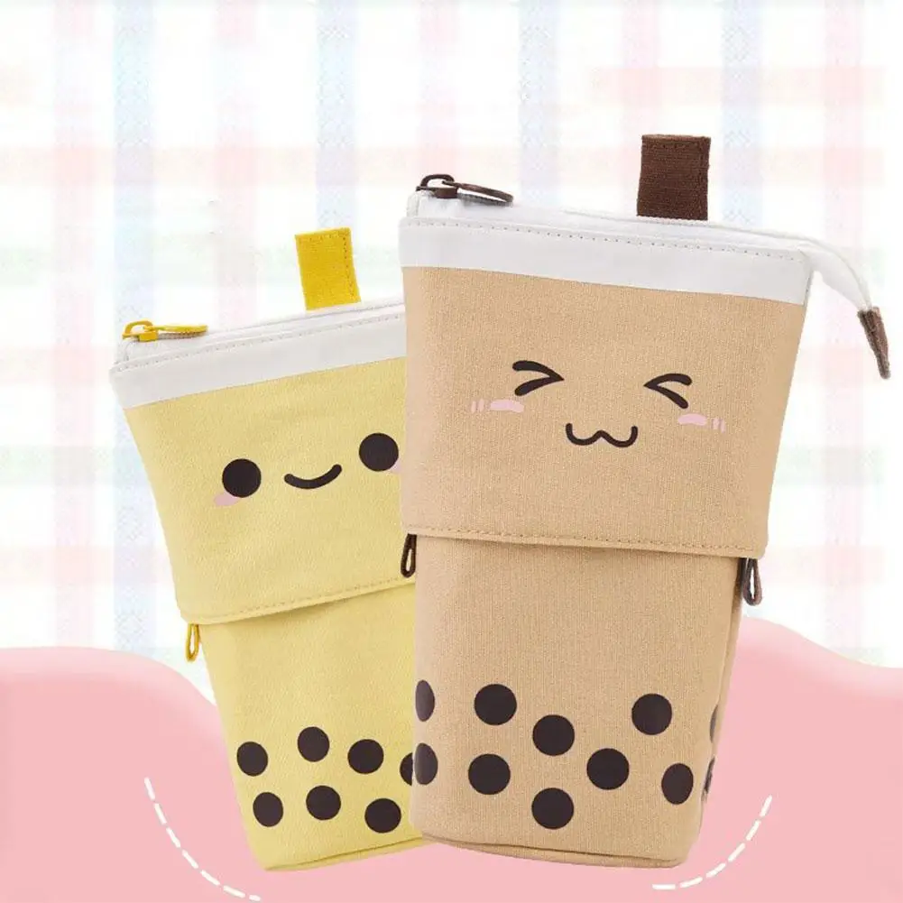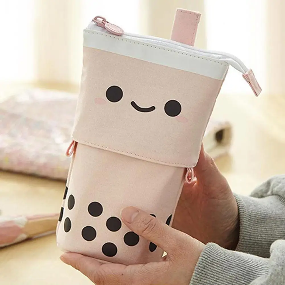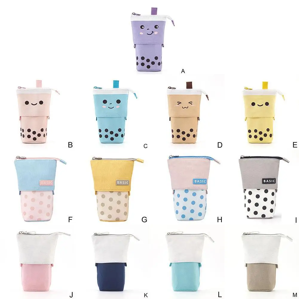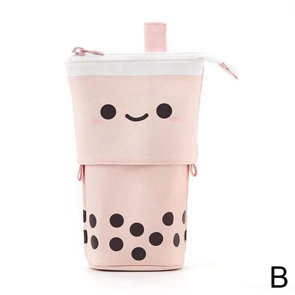 Чехол для карандаша 2021 с молочным чаем и милой девушкой с улыбающимся лицом Многофункциональный вместительный держатель для ручек на молнии сумка для хранения канцелярских принадлежностей выдвижной