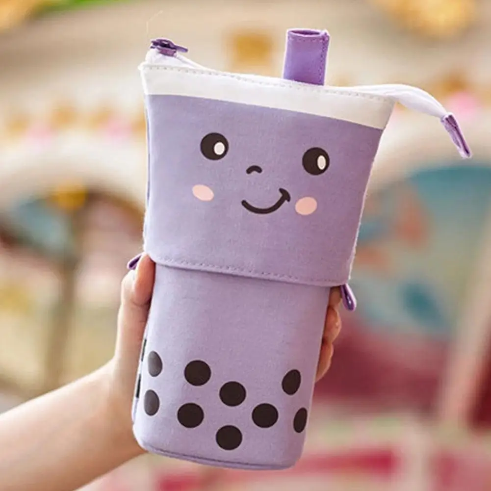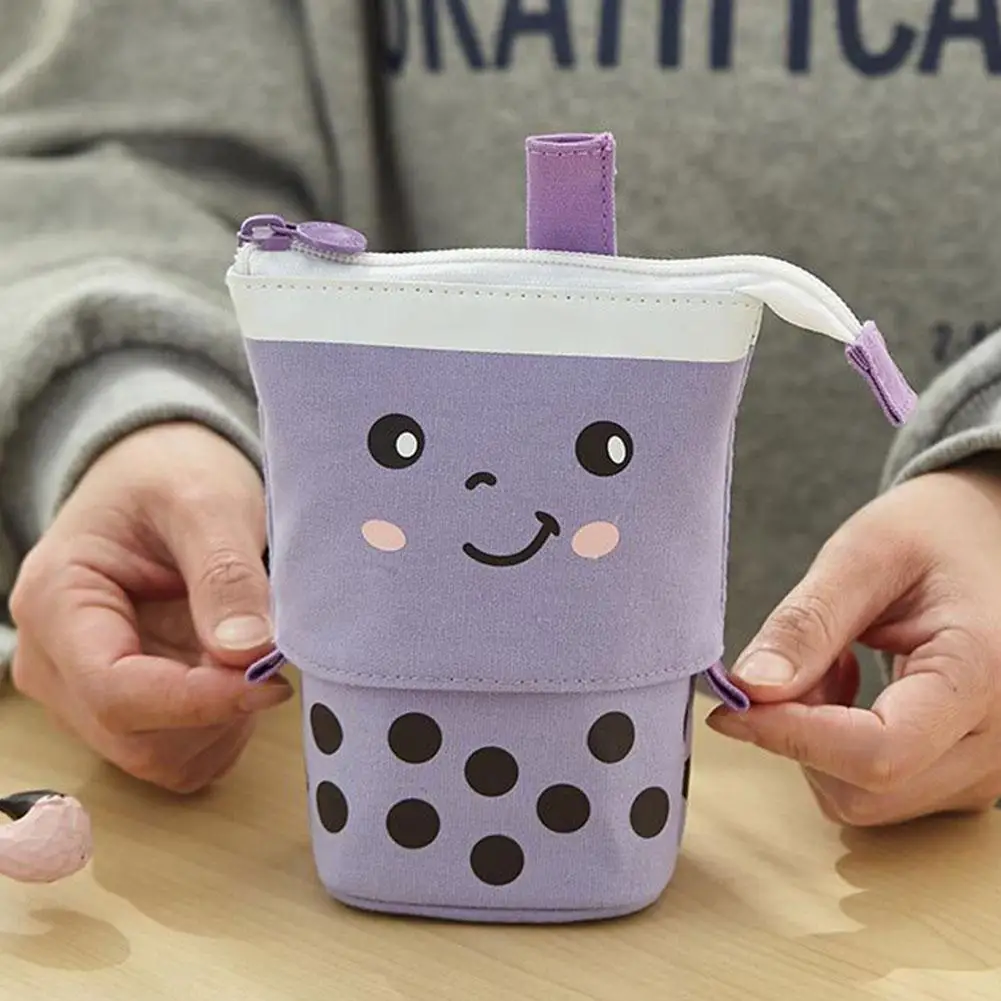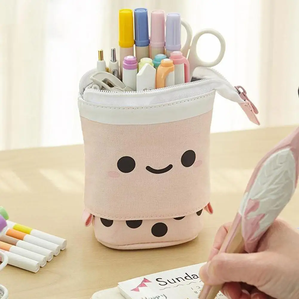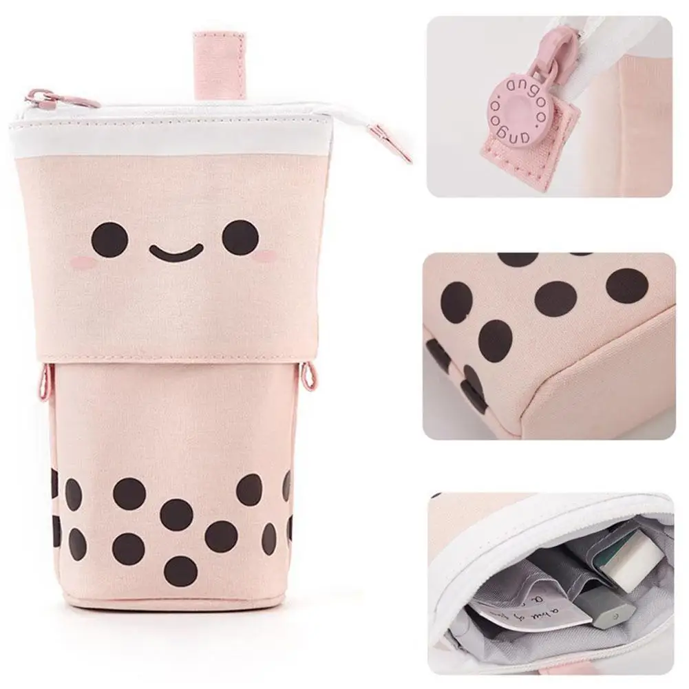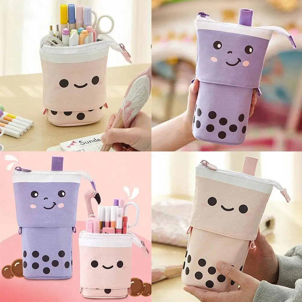 Чехол для карандаша 2021 с молочным чаем и милой девушкой с улыбающимся лицом Многофункциональный вместительный держатель для ручек на молнии сумка для хранения канцелярских принадлежностей выдвижной