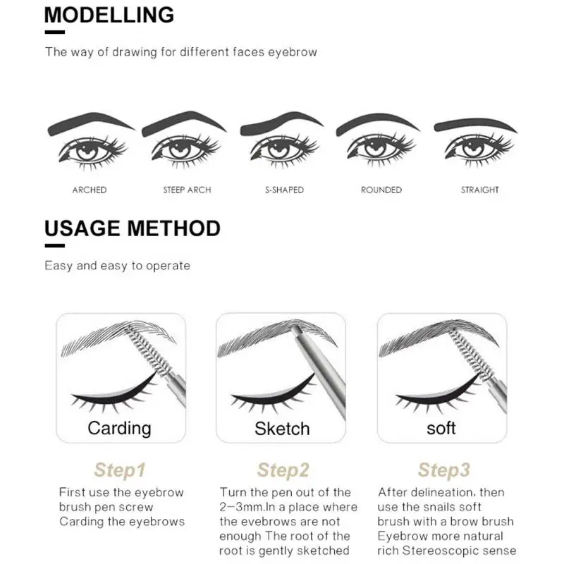 Дизайн с двойными головками, одна головка используется для расчесывания бровей, другая-для окраски бровей